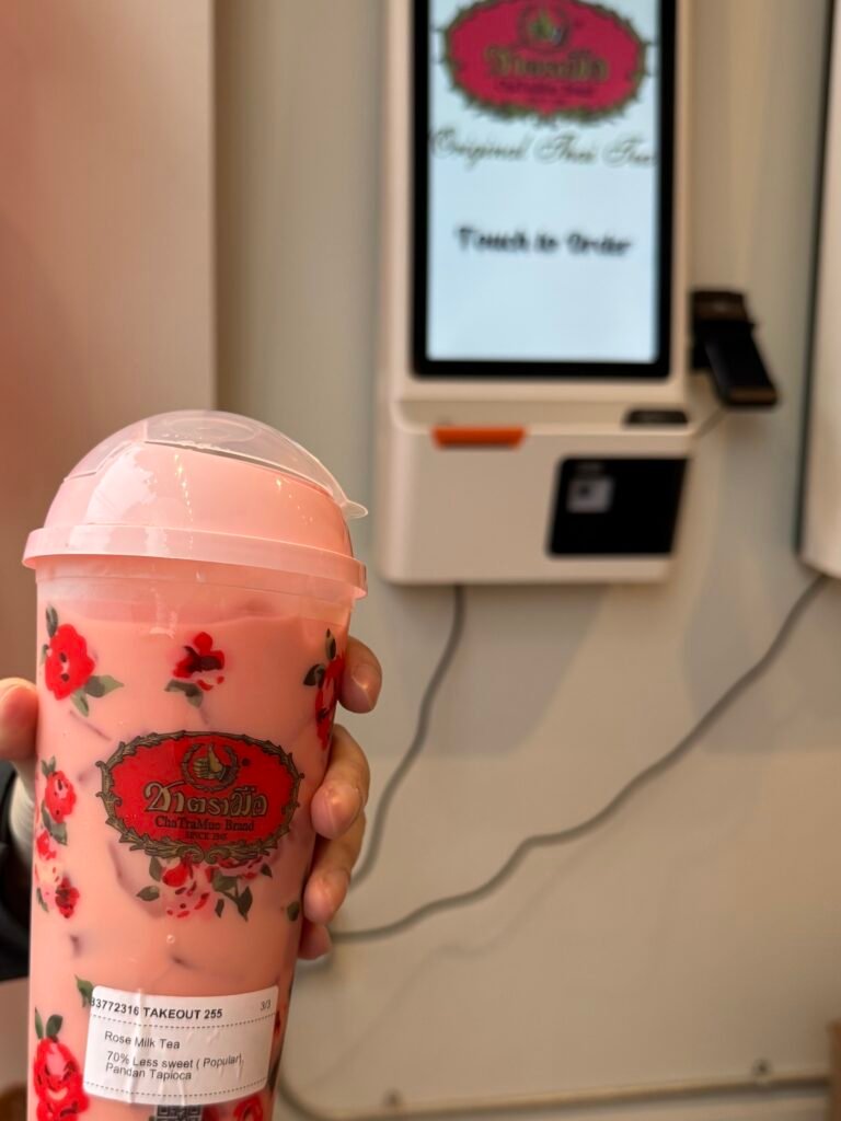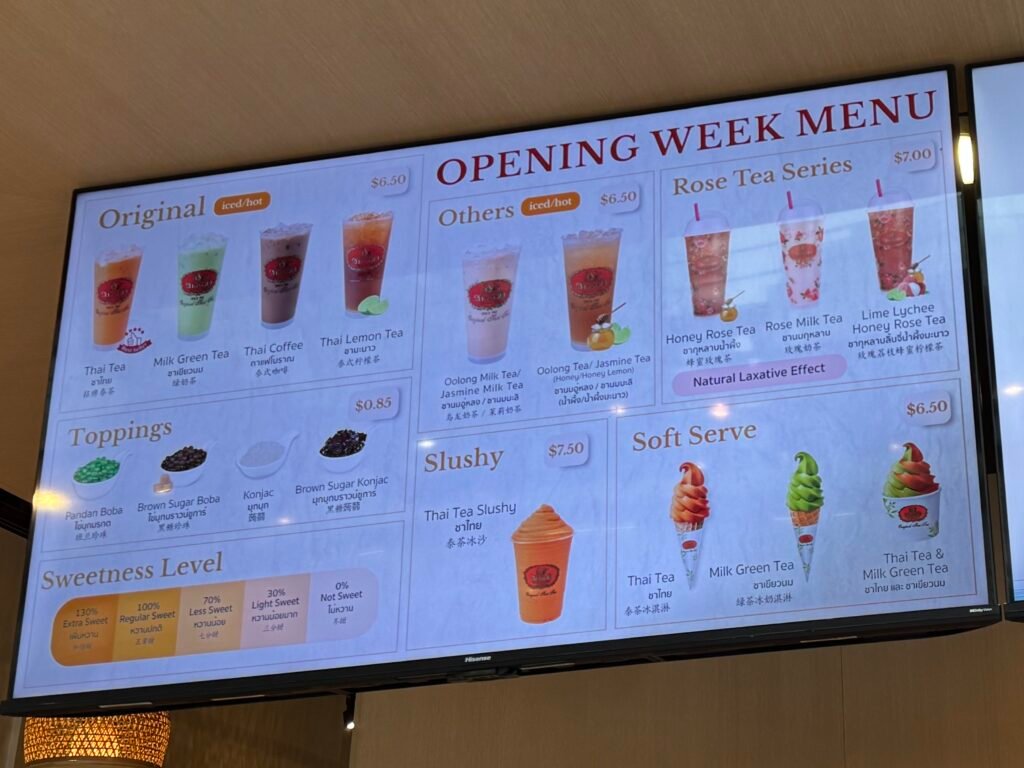 メニューの中心は、ブランドの代名詞ともいえるタイティー。氷を入れて飲む文化に合わせ、茶葉を濃く抽出しているのが特徴で、ミルクを加えてもお茶の風味がしっかり残る味わいだ。